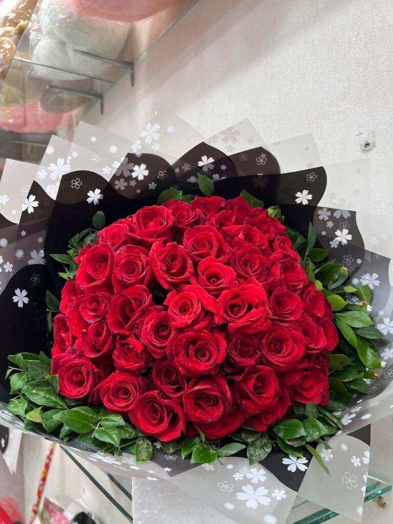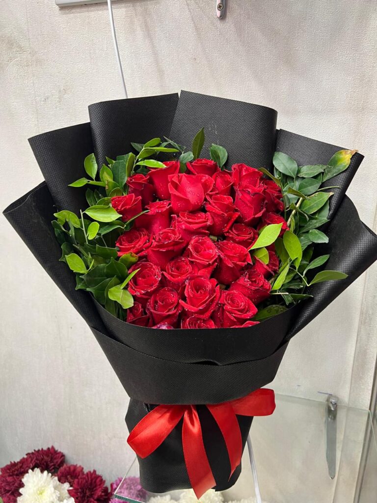 Nothing speaks the language of love quite like a classic bouquet of red roses. Our “Timeless Romance” arrangement is designed to make a grand, unforgettable statement. Featuring a lush gathering of approximately two dozen premium red roses, this bouquet is the definitive choice for expressing deep passion, admiration, and commitment. It is the perfect gift for anniversaries, Valentine’s Day, engagements, or simply to say “I love you” with unparalleled elegance.